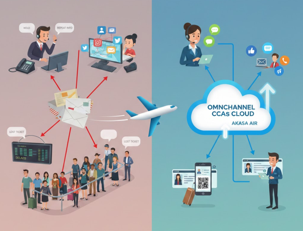 Un caso destacado es el de Akasa Air, aerolínea que decidió dar un giro estratégico: abandonar la fragmentación tecnológica y migrar hacia un modelo CCaaS (Contact Center as a Service) omnicanal 100 % basado en la nube.